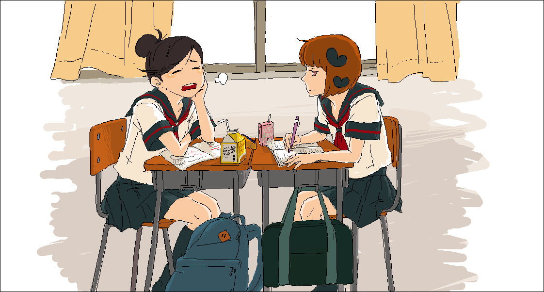 2011/05/25 Category : 妄想(パロとか) お勉強会 一昨日だったかな?絵茶で落書きしてた奴です〜あんまし変わらなかったけど、んまぁもういいや〜ってことでうpです現役女子高生に「もう夏服なの?」って聞いてみたら(おっと。セクハラじゃないですよね?)もう夏服だと聞いたのでこの子らも夏服ですよ〜へっへっへ!夏のセーラーって…やっぱいいですなwwwふへへwww