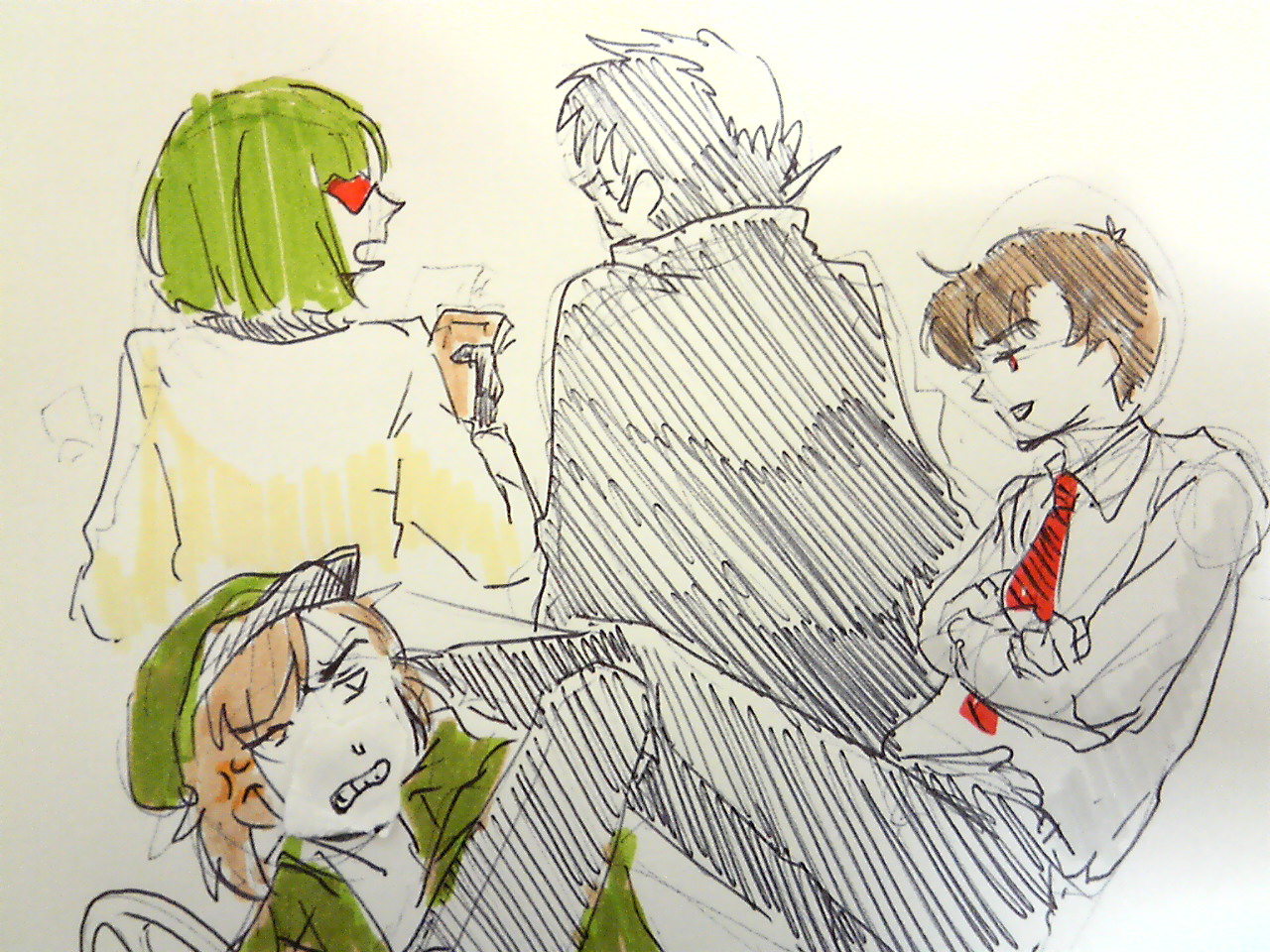2011/01/27 Category : 手塚作品 鮎子さんリクエスト? ロック、BJ、いんこ、MNが4兄弟だったら…描いてみました!金欲はんぱない4兄弟ですね…脳内設定では、作品順に長男 緑郎次男 黒男三男 陽介四男 信也って感じでいんこ 「えっ?今日の稼ぎこんだけか!?」BJ 「何だ、私がバンソーコーはってやるのと同じ程度しかないじゃないか!」いんこ 「タクシーって案外儲かんねぇんだなぁ、コレはいくら何でもすくねぇよなぁ」ロック 「おい信也、お前客拾わないで、彼女んトコ行ってたんじゃないよな??(足でグリグリ」MN 「タクシーで真面目に稼いでる俺と、法外に稼ぐあんたらを比べんじゃねぇ!」的な!!(^ω^)信也(漢字あってるかうろ覚えです;)もモグリだけどこの子は他とは違ってあんまし法外にふんだくる事はしてないですよね??だから金の亡者達にいじられてそうだなぁ~って感じで妄想してみました(^ω^)時間的に7000も描けそうなので次の記事で!