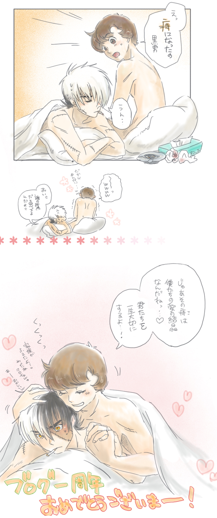 2012/06/13 Category : ∟マクジャ 痔 とある方がブログ一周年だということで!そして先日その方と痔の話でたいそう盛り上がったので、痔マクジャ送りつけてきました!キリッ早速彼女のブログに載せて頂いたのですがそれに伴いとあるカミングアウトもさせてしまって…www私はしっかり笑わせてもらったのですが迷惑極まりない1周年にしちゃったね…っwwwごめん…おめでとう!!www七郎くんとおしあわせに!!!wwww興味のある方はあちらも覗いて見ることを強くおすすめしますww送りつけた痔マクジャですがエロくはないけどほぼ肌色なので、一応サムネ表示にしてあります。野郎のイチャイチャなぞ見たくない方は回れ右です。大丈夫な方は↓画像クリックで全表示痔は夜泣きしないからいいよね…とか間久部なら言ってくれそうですよね…wwwwwwwホントは「パパですよー」って黒男の痔にご挨拶する間久部とか書きたかったけどブログ一周年を祝う気持ちがこれ以上薄れたらたまらんと思って自粛しましたwwお下品ですいませ…ペコ PR Comment0 Comment Comment Form お名前name タイトルtitle メールアドレスmail address URLurl コメントcomment パスワードpassword
